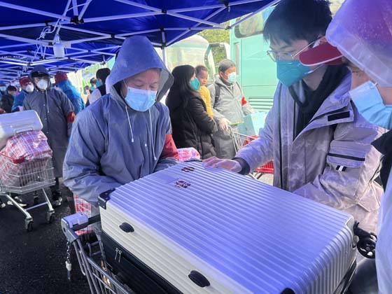 2月11日清晨,八位志愿者冒雨從杭城各地趕到集合點濱江區(qū)長江小區(qū)。在社區(qū)的統(tǒng)一安排下,到點位上給隔離返家的社區(qū)居民搬運行李、攙扶老人、照顧兒童,說一些體己的安慰話等。